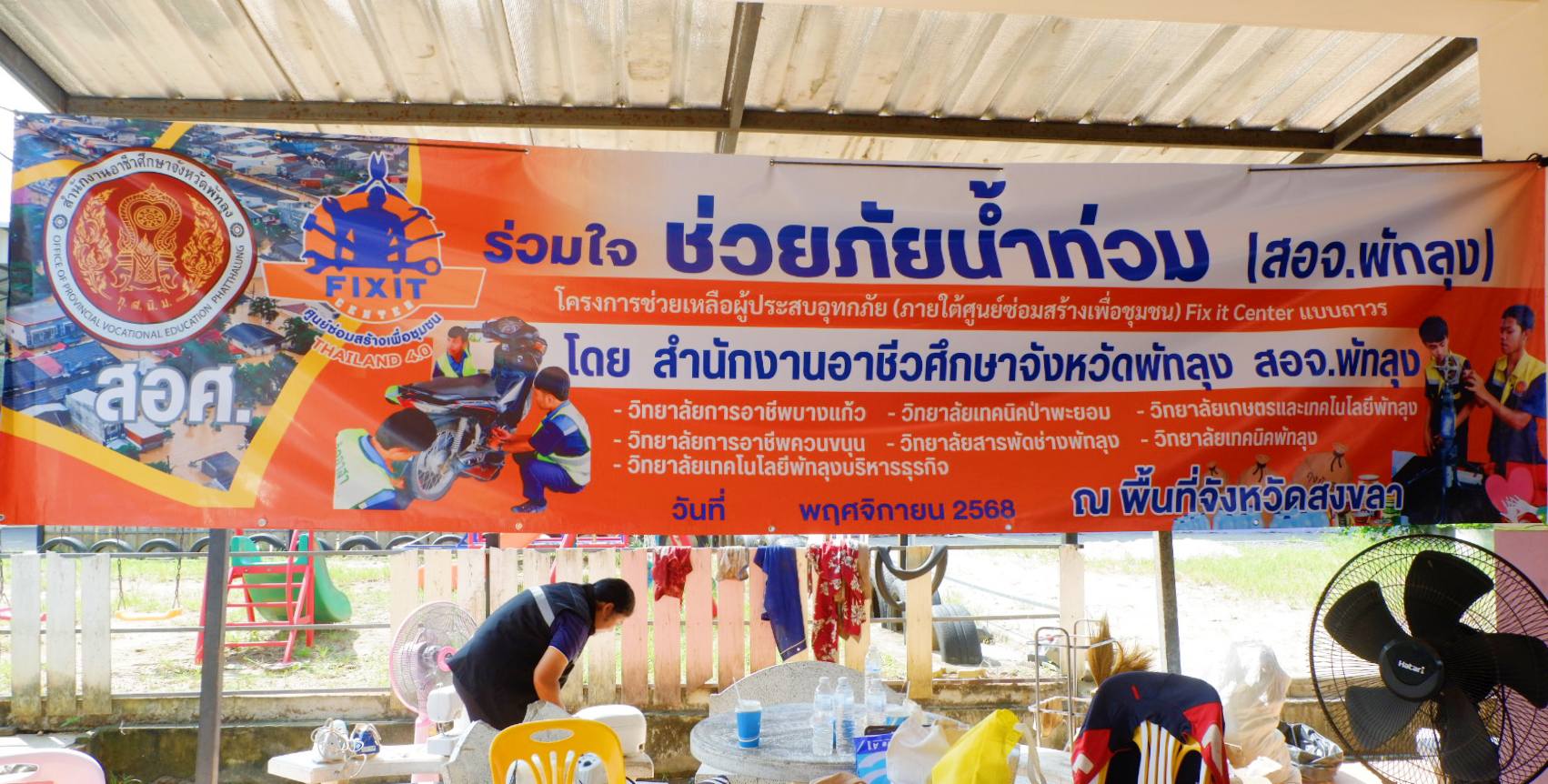Fix it จิตอาสา(วันที่ ๖ ของการลงพืันที่) วันพฤหัสบดี ที่ ๔ ธันวาคม ๒๕๖๘ นายศิริวัฒน์ รักสกุล ผู้อำนวยการวิทยาลัยการอาชีพบางแก้ว ปฏิบัติหน้าที่ผู้อำนวยการสำนักงานอาชีวศึกษาจังหวัดพัทลุง นำสถานศึกษาสังกัดอาชีวศึกษาจังหวัดพัทลุง ประกอบด้วย วิทยาลัยเทคนิคป่าพะยอม วิทยาลัยการอาชีพควนขนุน วิทยาลัยสารพัดช่างพัทลุง วิทยาลัยการอาชีพบางแก้ว ลงพื้นที่ช่วยเหลือผู้ประสบภัยอุทกภัย จังหวัดสงขลา บริการฟรี!! บริการซ่อมเครื่องใช้ไฟฟ้า ซ่อมรถจักรยานยนต์ เครื่องยนต์และอุปกรณ์ทางการเกษตร |