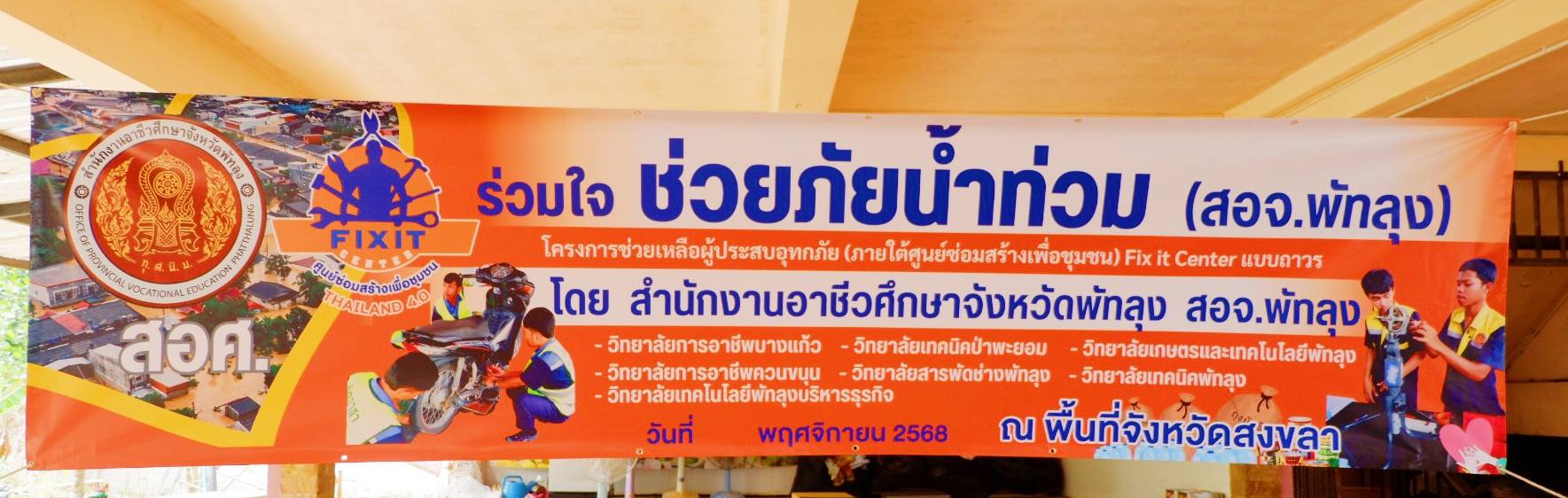 วันจันทร์ ที่ ๘ ธันวาคม ๒๕๖๘ นายศิริวัฒน์ รักสกุล ผู้อำนวยการวิทยาลัยการอาชีพบางแก้ว ปฏิบัติหน้าที่ผู้อำนวยการสำนักงานอาชีวศึกษาจังหวัดพัทลุง นำสถานศึกษาสังกัดอาชีวศึกษาจังหวัดพัทลุง ประกอบด้วย วิทยาลัยเทคนิคป่าพะยอม วิทยาลัยการอาชีพควนขนุน วิทยาลัยสารพัดช่างพัทลุง วิทยาลัยการอาชีพบางแก้ว ลงพื้นที่ช่วยเหลือผู้ประสบภัยอุทกภัย จังหวัดสงขลา บริการฟรี!! บริการซ่อมเครื่องใช้ไฟฟ้า ซ่อมรถจักรยานยนต์ เครื่องยนต์และอุปกรณ์ทางการเกษตร ณ โรงเรียนบ้านเกาะหมี อำเภอหาดใหญ่ จังหวัดสงขลา |