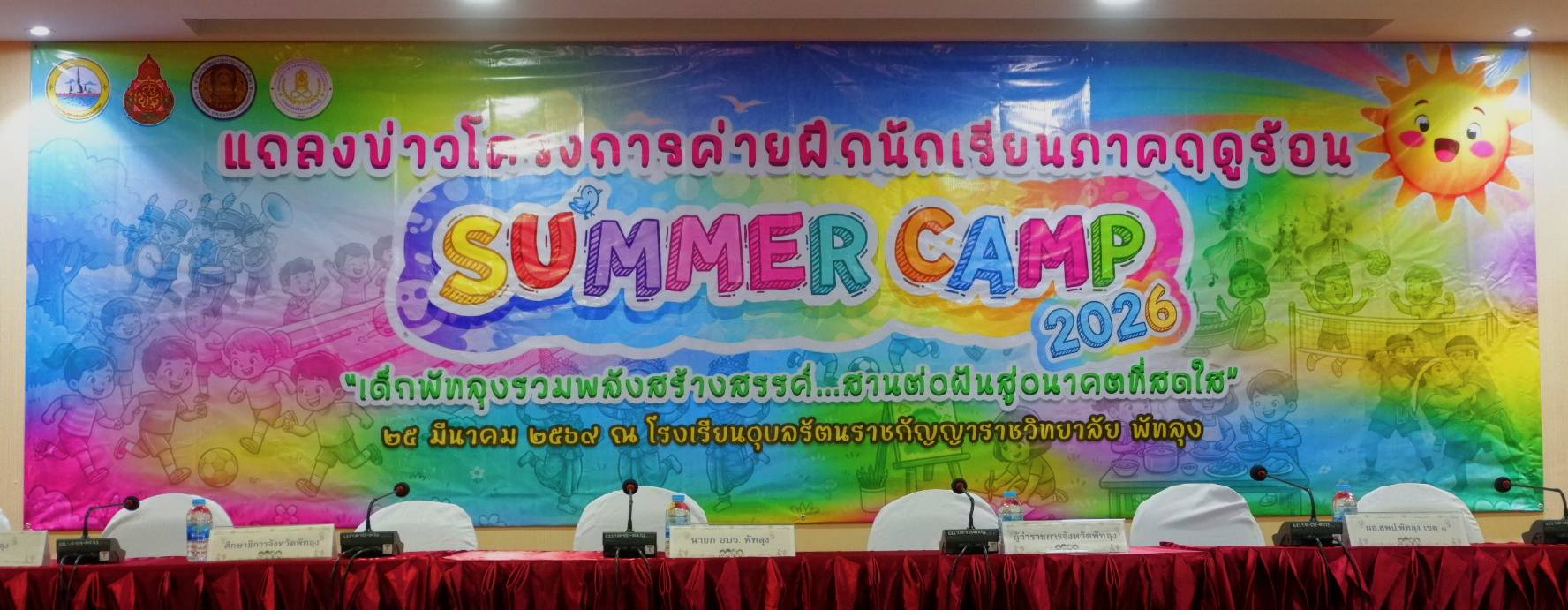 วันพุธที่ ๒๕ มีนาคม ๒๕๖๙ นายศิริวัฒน์ รักสกุล ผู้อำนวยการวิทยาลัยการอาชีพบางแก้ว ปฏิบัติหน้าที่ผู้อำนวยการสำนักงานอาชีวศึกษาจังหวัดพัทลุง พร้อมด้วยคณะผู้บริหาร คณะครู สังกัดอาชีวศึกษาจังหวัดร่วมงานแถลงข่าว โดยมีนายธราวุธ ช่วยเกิด รองผู้ว่าราชการจังหวัดพัทลุงเป็นประธานฯและร่วมแถลงข่าวกับคณะต่างๆ โครงการ Summer Camp มีวัตถุประสงค์เพื่อส่งเสริมให้เด็ก นักเรียน และเยาวชน ได้ใช้เวลาว่างจากการเรียนในช่วงปิดภาคเรียนให้เกิดประโยชน์โดยจัดกิจกรรมที่หลากหลายในการพัฒนาเด็ก นักเรียน ให้มีความพร้อมทั้งทางด้านร่างกาย อารมณ์ จิตใจ สังคม และสติปัญญาตลอดจนเป็นการเพิ่มศักยภาพในด้านวิชาการให้แก่นักเรียนในจังหวัดพัทลุง ในโอกาสนี้ได้ร่วมลงนามบันทึกข้อตกลงความร่วมมือ(MOU)กับองค์การบริหารส่วนจังหวัดพัทลุง เพื่อเป็นการยกระดับคุณภาพการดำเนินกิจกรรมค่ายฝึกนักเรียนภาคฤดูร้อนให้เป็นไปอย่างมีประสิทธิภาพ เกิดประโยชน์อันสูงสุดแก่เยาวชน ณ ห้องประชุมท่ามิหรำโรงเรียนอุบลรัตนราชกัญญาราชวิทยาลัย พัทลุง (ภาพประกอบเพิ่มเติม)