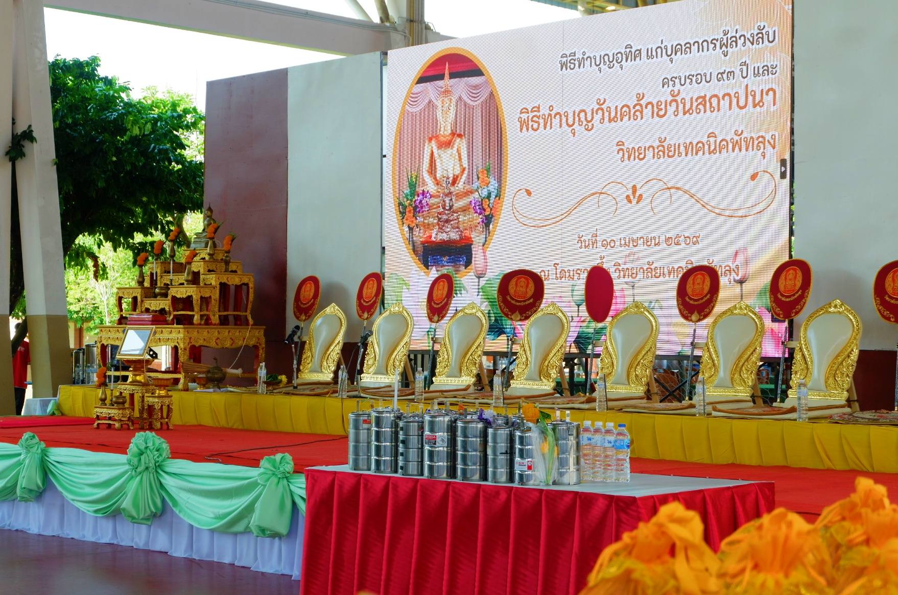 วันศุกร์ที่ ๑๐ เมษายน ๒๕๖๙ เวลา ๐๙.๓๐ น. นายศิริวัฒน์ รักสกุล ผู้อำนวยการวิทยาลัยการอาชีพบางแก้ว ปฏิบัติหน้าที่ผู้อำนวยการสำนักงานอาชีวศึกษาจังหวัดพัทลุง พร้อมด้วยนายธวัชชัย นิตย์โชติ รองผู้อำนวยการวิทยาลัยการอาชีพบางแก้ว ปฏิบัติหน้าที่เลขานุการสำนักงานอาชีวศึกษาจังหวัดพัทลุง ร่วมพิธีทำบุญวันคล้ายวันสถาปนา วิทยาลัยเทคนิคพัทลุง ครบรอบ ๙๓ ปี ณ บริเวณโดมรวมผึ้ง วิทยาลัยเทคนิคพัทลุง โดยมีนางสาวชนม์ศิกานต์ แก้วกระจ่าง ผู้อำนวยการวิทยาลัยเทคนิคพัทลุง เป็นประธานในพิธีทำบุญอุทิศส่วนบุญส่วนกุศลแด่ครูบูรพาจารย์และศิษย์เก่าที่ล่วงลับไปแล้ว และพิธีเจริญพระพุทธมนต์เป็นสิริมงคลแก่บุคลากร พร้อมด้วยคณะผู้บริหาร ครูอาวุโส คณะครู บุคลากรทางการศึกษา และแขกผู้มีเกียรติ เข้าร่วมพิธี ภายใต้โครงการ“ครบรอบ ๙๓ ปีวันคล้ายวันสถาปนาวิทยาลัยเทคนิคพัทลุง” ณ บริเวณโดมรวงผึ้ง วิทยาลัยเทคนิคพัทลุง (ภาพประกอบเพิ่มเติม) |