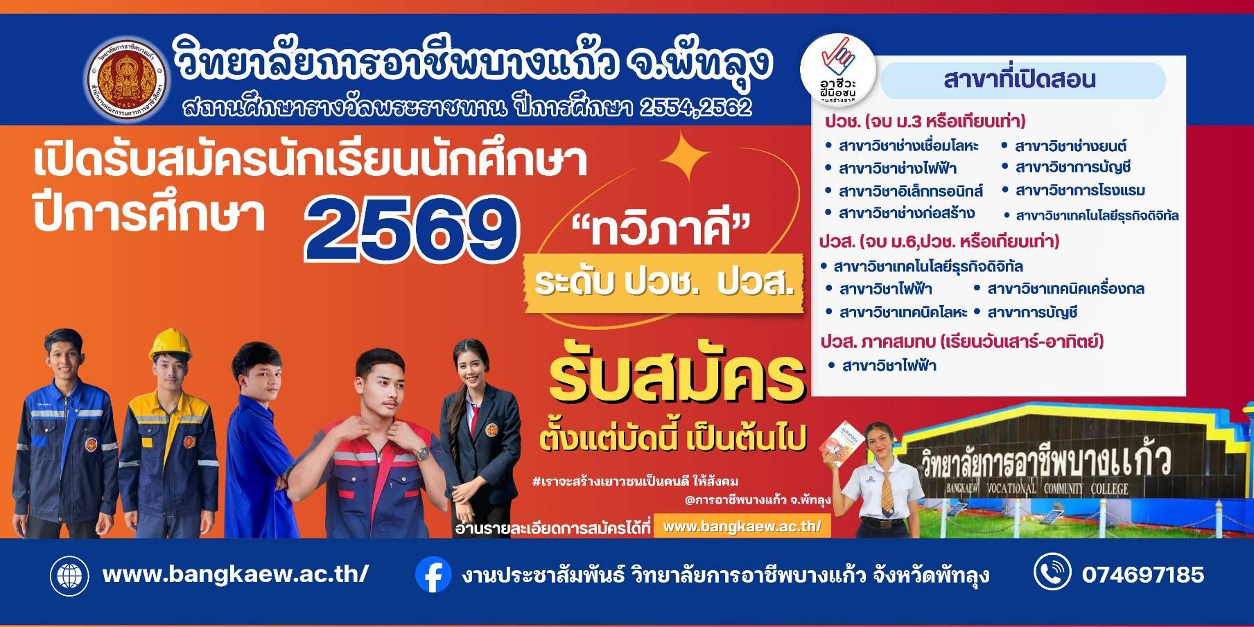 ยินดีต้อนรับเข้าสู่เว็บไซต์ วิทยาลัยการอาชีพบางแก้ว #Bangkaew Industrial and Community Education College#