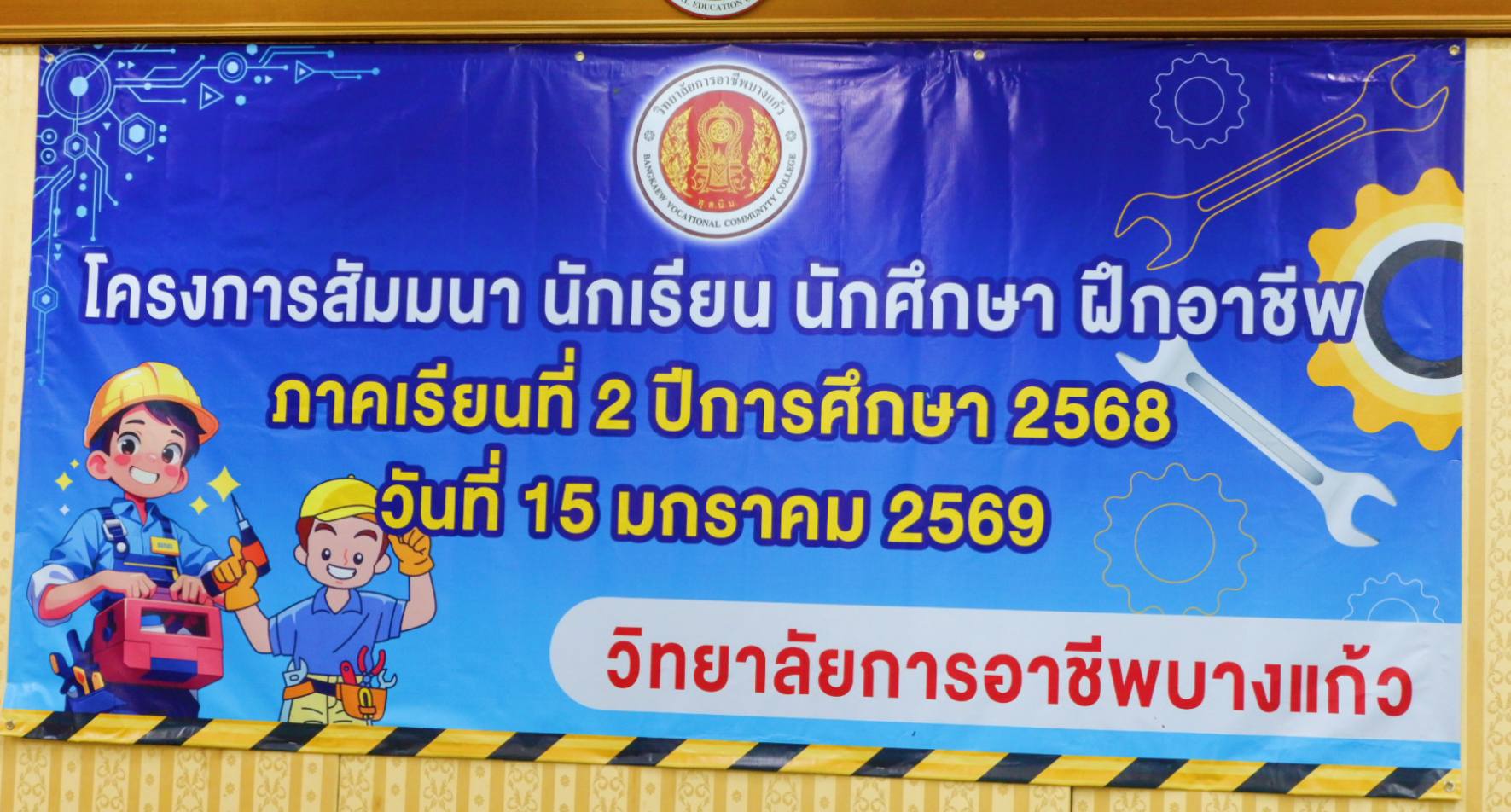 วันพฤหัสบดี ที่ ๑๕ มกราคม ๒๕๖๙ นายศิริวัฒน์ รักสกุล ผู้อำนวยการวิทยาลัยการอาชีพบางแก้ว เป็นประธานในพิธีเปิดโครงการสัมมนา นักเรียนนักศึกษา ฝึกอาชีพ ภาคเรียนที่ ๒ ปีการศึกษา ๒๕๖๘ โดยมีนายธวัชชัย นิตย์โชติ รองผู้อำนวยการฝ่ายบริหารทรัพยากรและฝ่ายวิชาการ กล่าวรายงานวัตถุประสงค์ของการจัดโครงการ เพื่อให้นักเรียนนักศึกษาได้สะท้อนปัญหาอุปสรรค และแนวทางการแก้ไขที่พบระหว่างการฝึกอาชีพ พร้อมทั้งได้แลกเปลี่ยนประสบการณ์การฝึกอาชีพจากสถานประกอบการ โดยมีนักเรียนนักศึกษาระดับ ปวช.๓ ปวส.๒ ครูที่ปรึกษา เข้าร่วมโครงการ ณ ห้องประชุมพิทักษ์ชัยเขตวิทยาลัยการอาชีพบางแก้ว (ภาพประกอบเพิ่มเติม) |