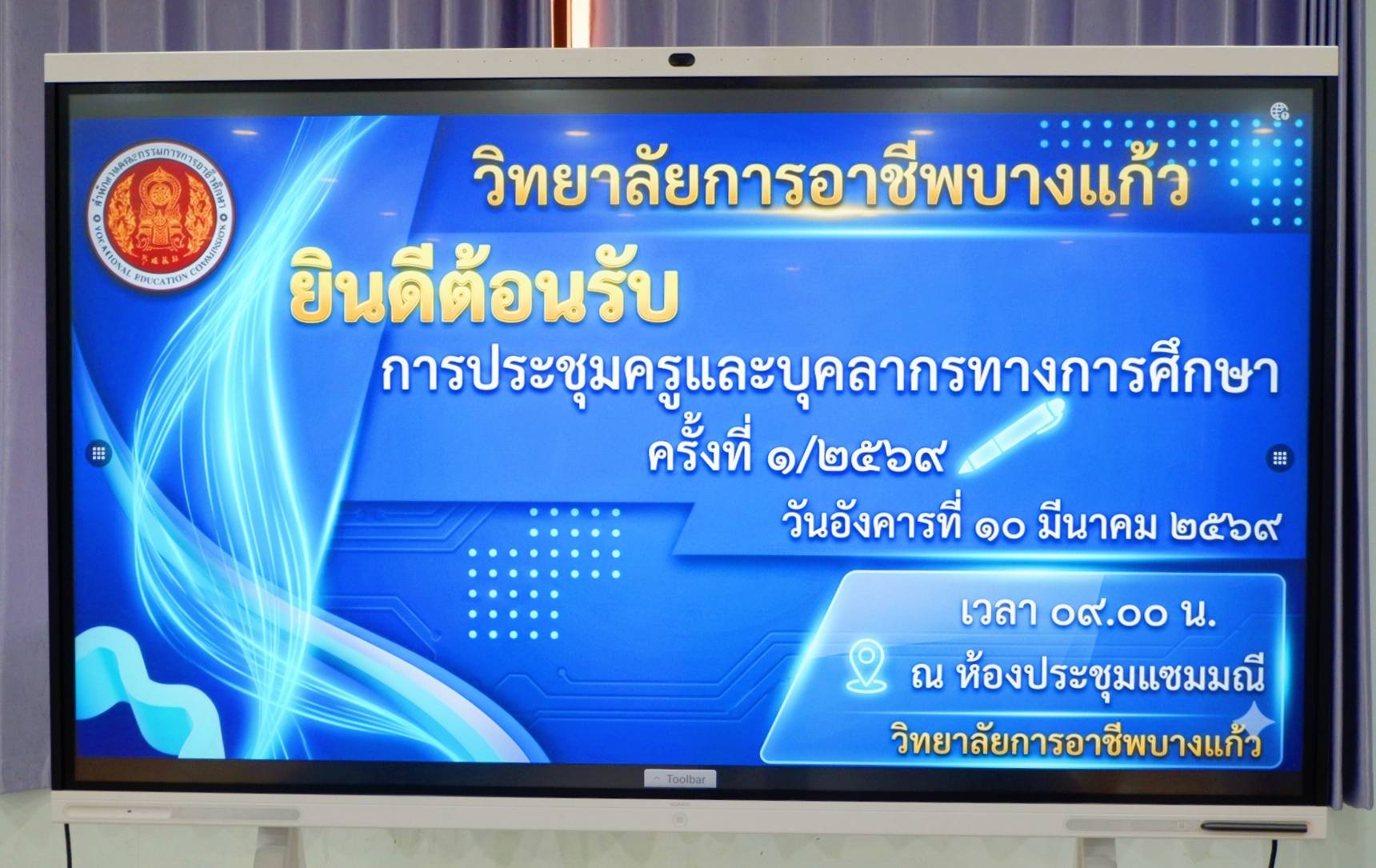 ประชุมครูและบุคลากรทางการศึกษา ครั้งที่ ๑/๒๕๖๙ วันอังคารที่ ๑๐ มีนาคม ๒๕๖๙ เวลา ๐๙.๐๐ น. นายศิริวัฒน์ รักสกุล ผู้อำนวยการวิทยาลัยการอาชีพบางแก้ว ประชุมครูและบุคลากรทางการศึกษา ครั้งที่ ๑/๒๕๖๙ เพื่อชี้แจงนโยบาย วางแผนการทำงาน ติดตามผล และสร้างความร่วมมือในการพัฒนาการจัดการศึกษาของวิทยาลัยฯ ทั้งนี้ก่อนการประชุมท่านผู้อำนวยการได้ให้เกียรติมอบเกียรติบัตรเชิดชูเกียรติ เนื่องในวันครู เชิดชูเกียรติประเภทครูผู้สอน เชิดชูเกียรติประเภทบุคลากรทางการศึกษา เชิดชูเกียรติภายใต้โครงการพัฒนาเครือข่ายครูแกนนำเพื่อร่วมนิเทศการเรียนรู้ ภายใต้สถานศึกษาอาชีวศึกษาภาคใต้ เชิดชูเกียรติรางวัลการประกวดผลงานวิจัยในชั้นเรียนครูผู้สอน (ภาพประกอบเพิ่มเติม) |